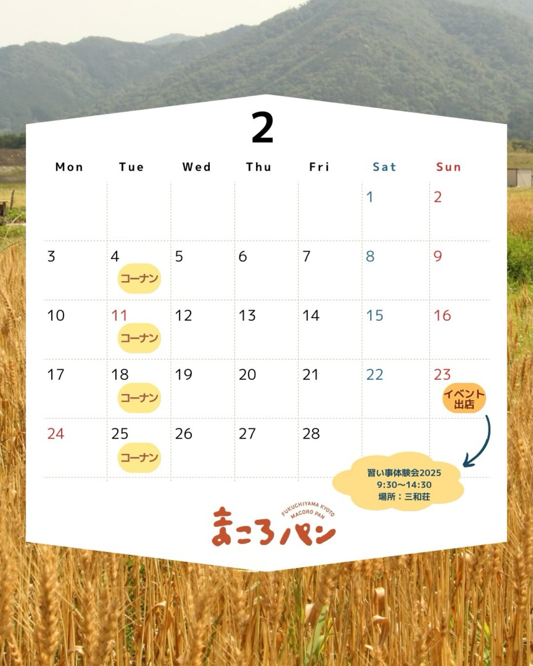 2月の出店・委託販売予定 まころパン