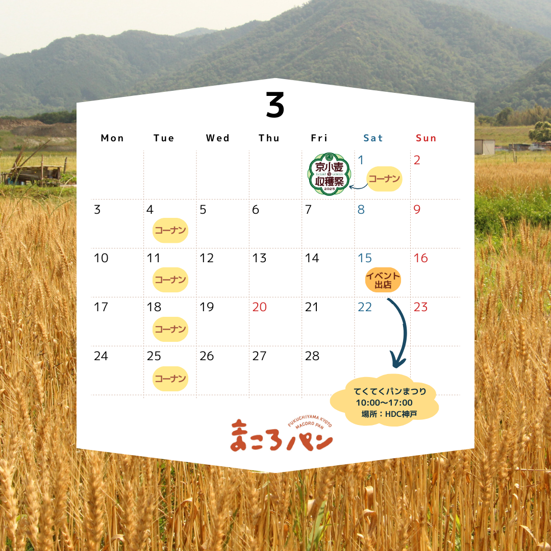 3月1日(土)は京小麦の収穫祭の担当週ですので、ぞうパン(丹波黒豆豆乳)を納品いたします。